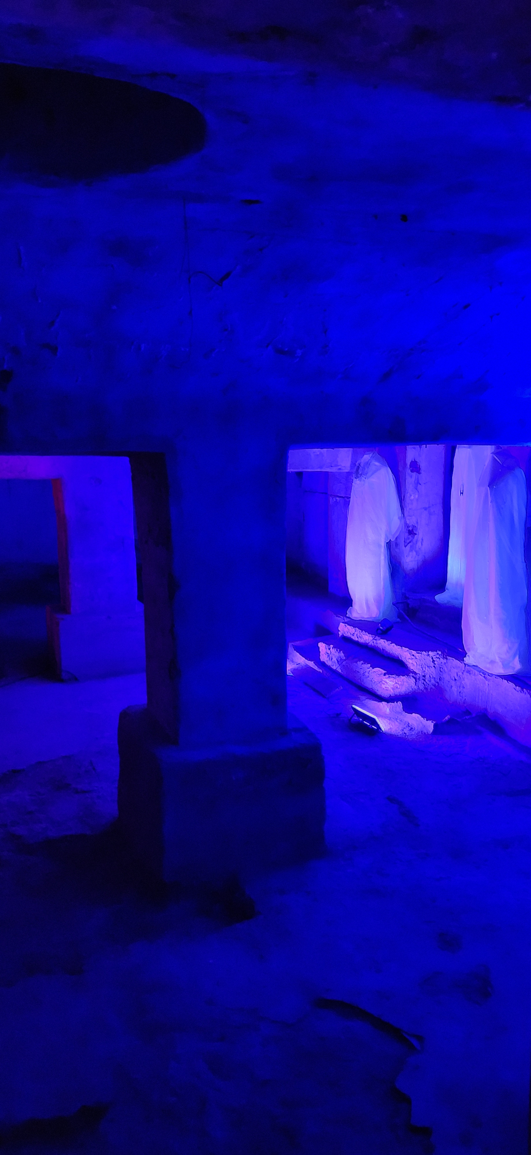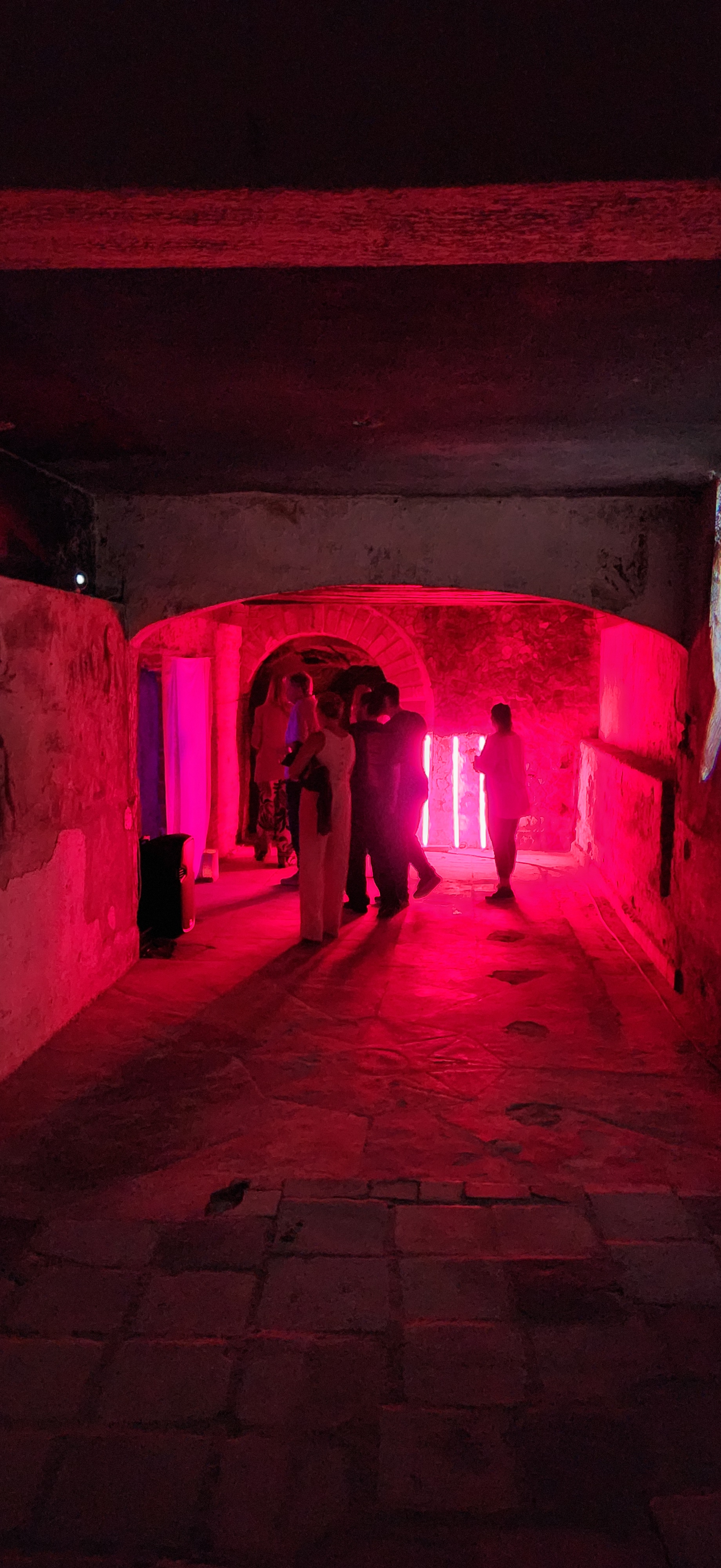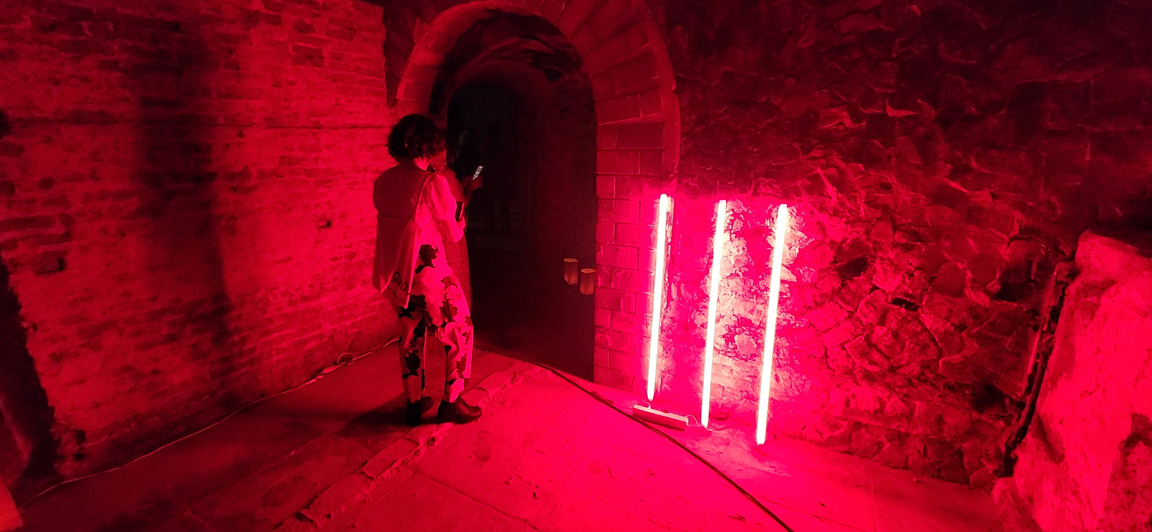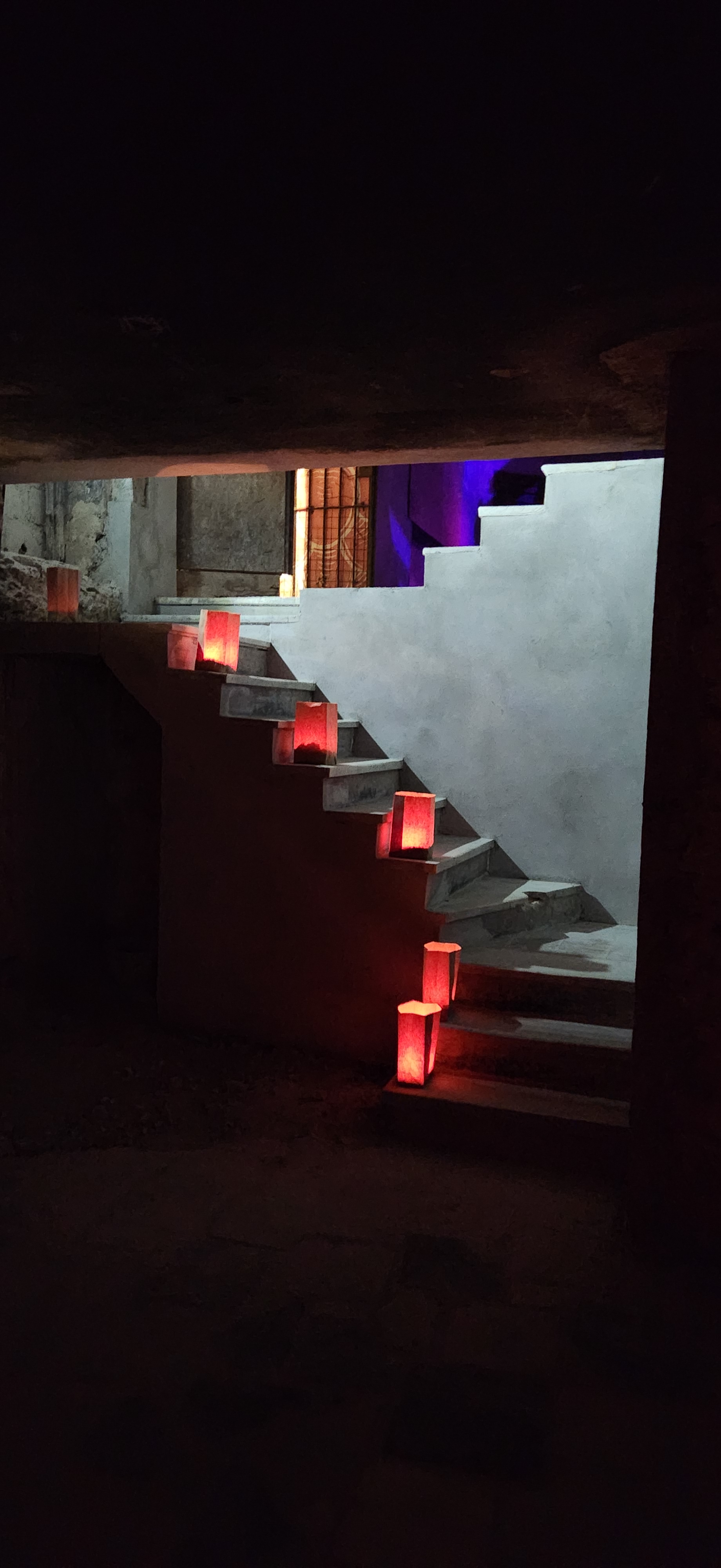 La tercera estación es Estigia, la antesala del Hades. En una antigua cisterna colonial inundada, velas flotantes representan las almas que aguardan cruzar el río del inframundo. El agua, elemento real del espacio arquitectónico, se transforma en materia simbólica: límite, espejo, tránsito. Resuena como un eco arcaico que dialoga con rituales contemporáneos de duelo y memoria.