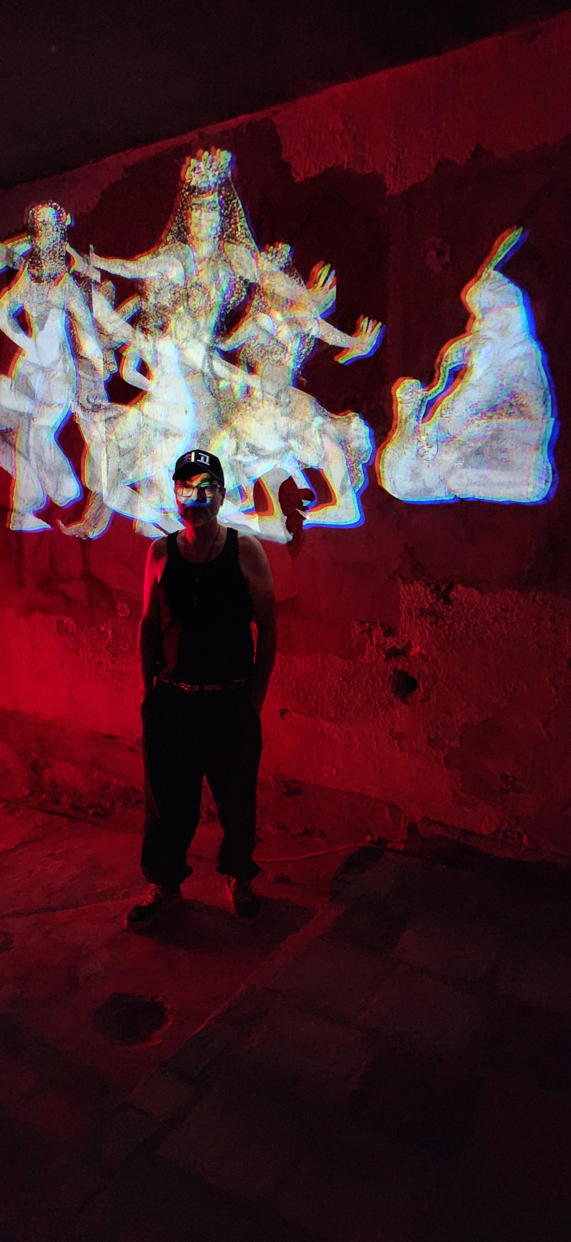 Espacio intervenido con multiproyección, arte lumínico, escultura efímera.